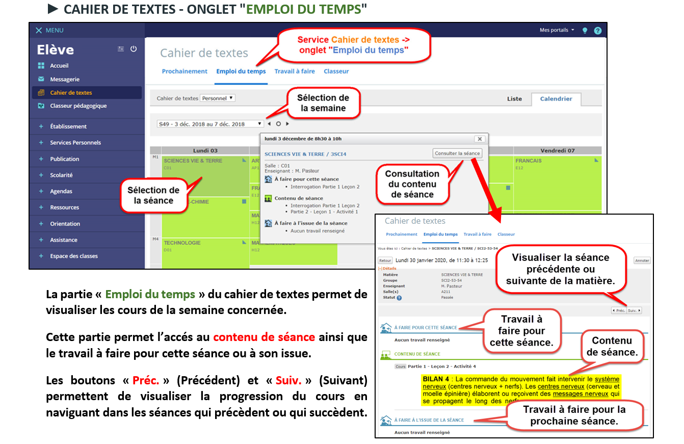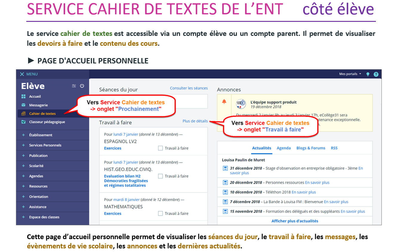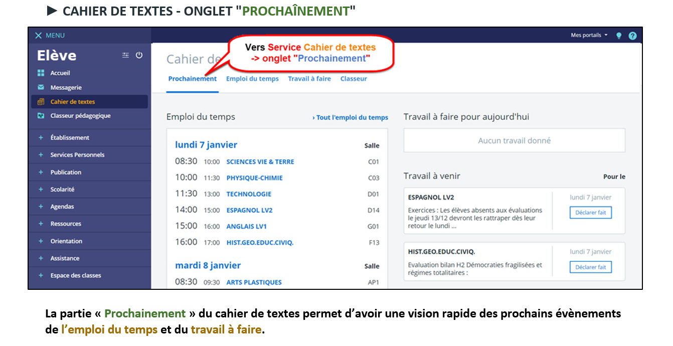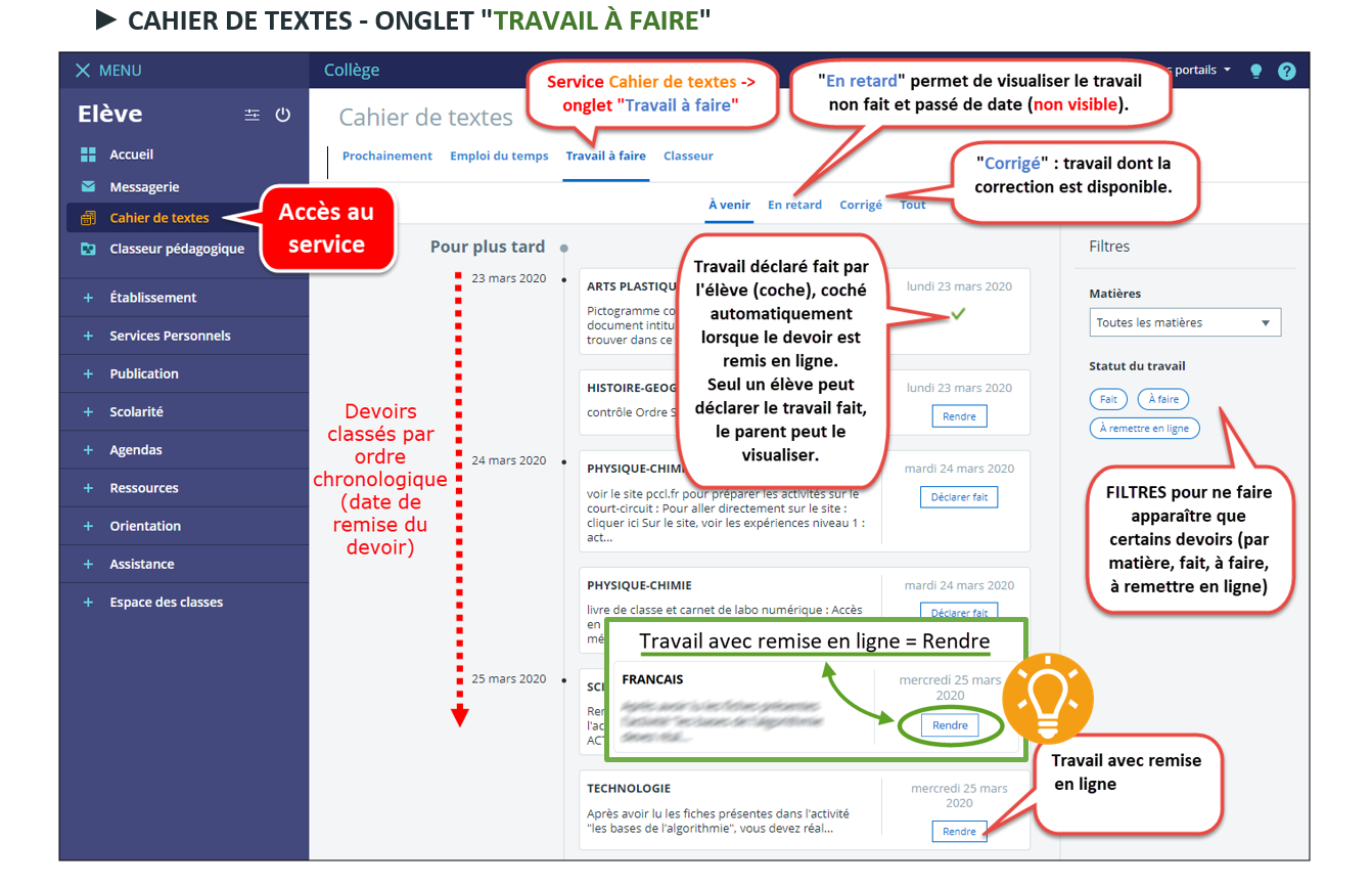 Utilisation du Cahier de texte côté élève