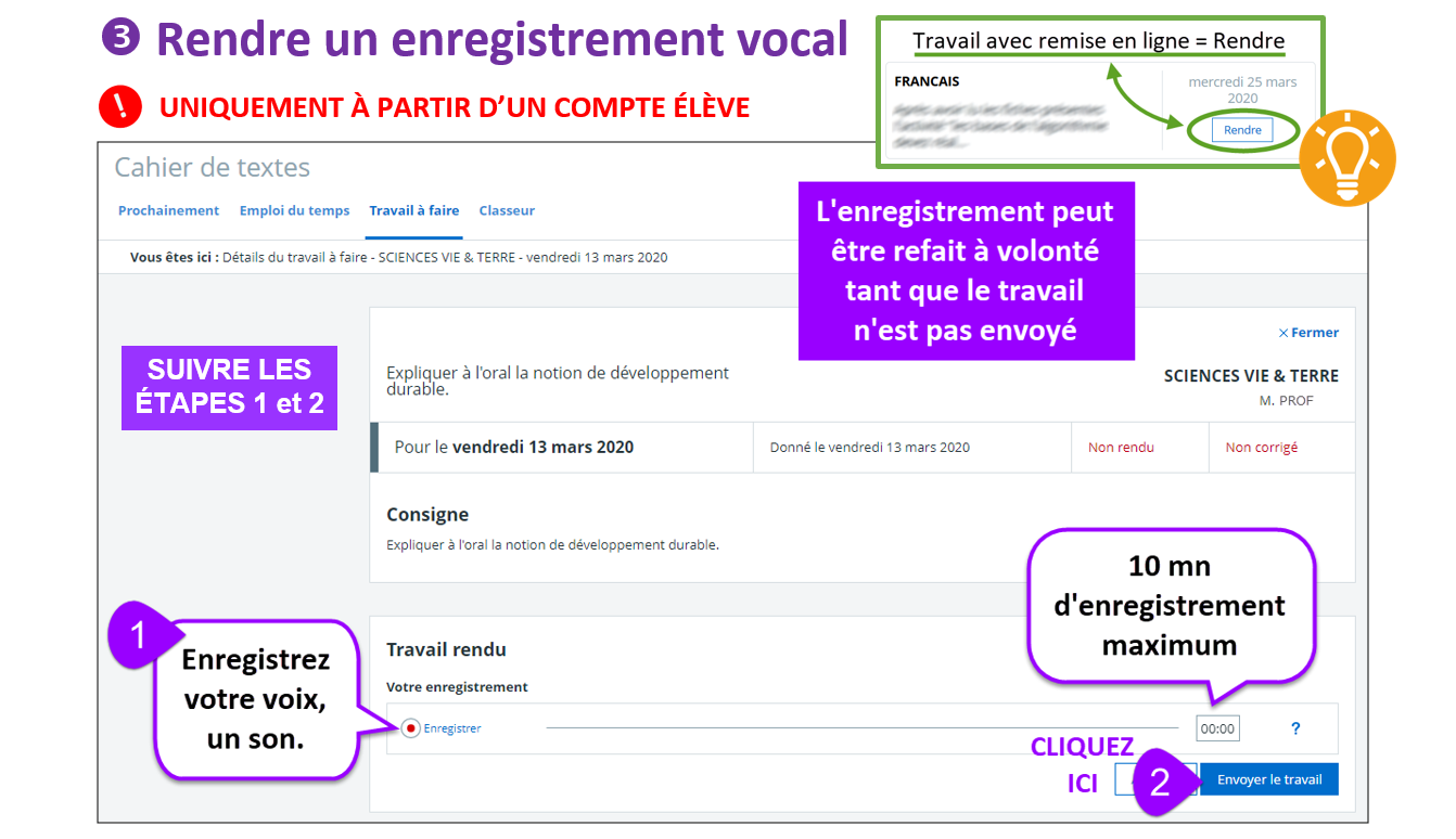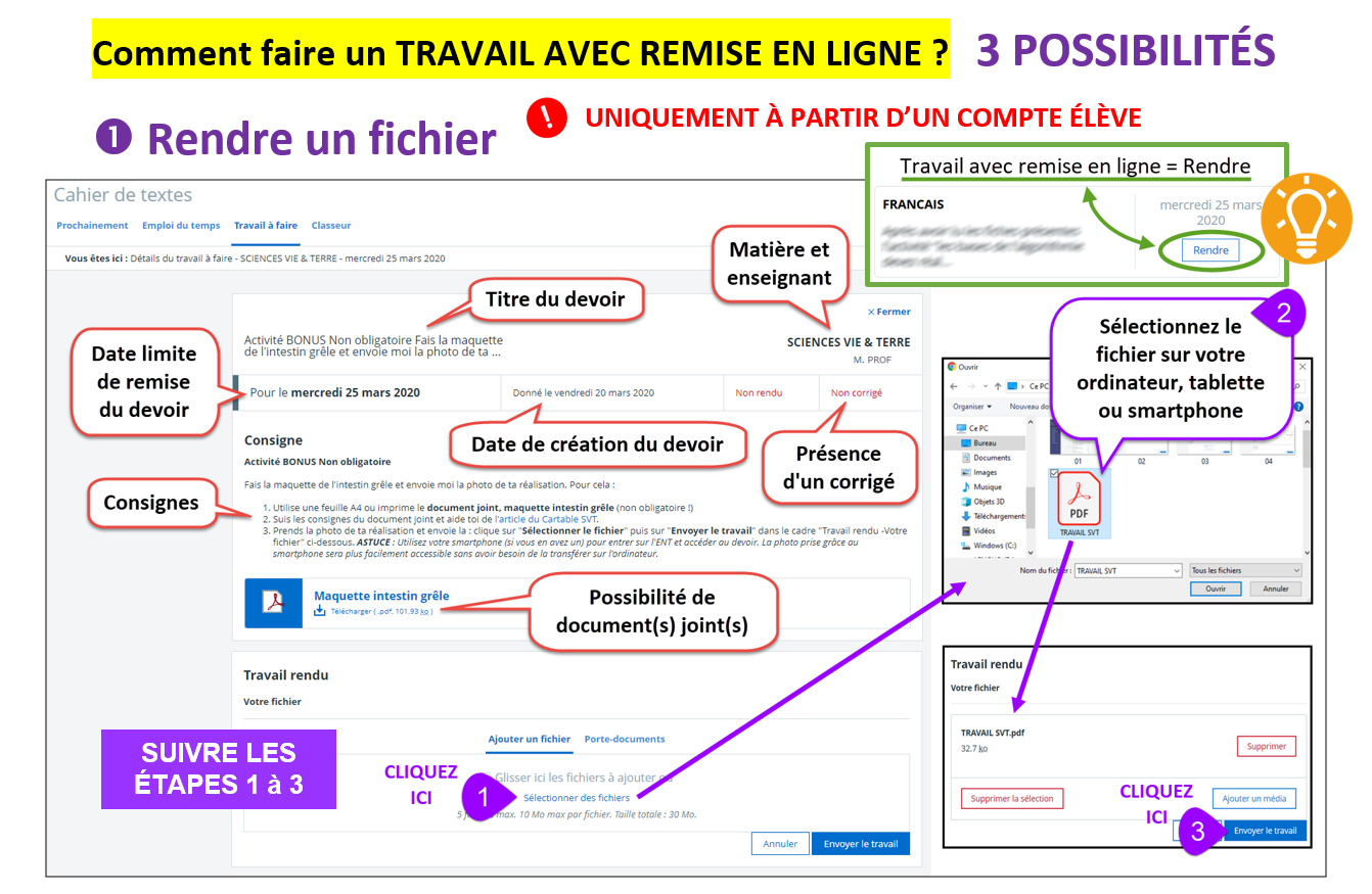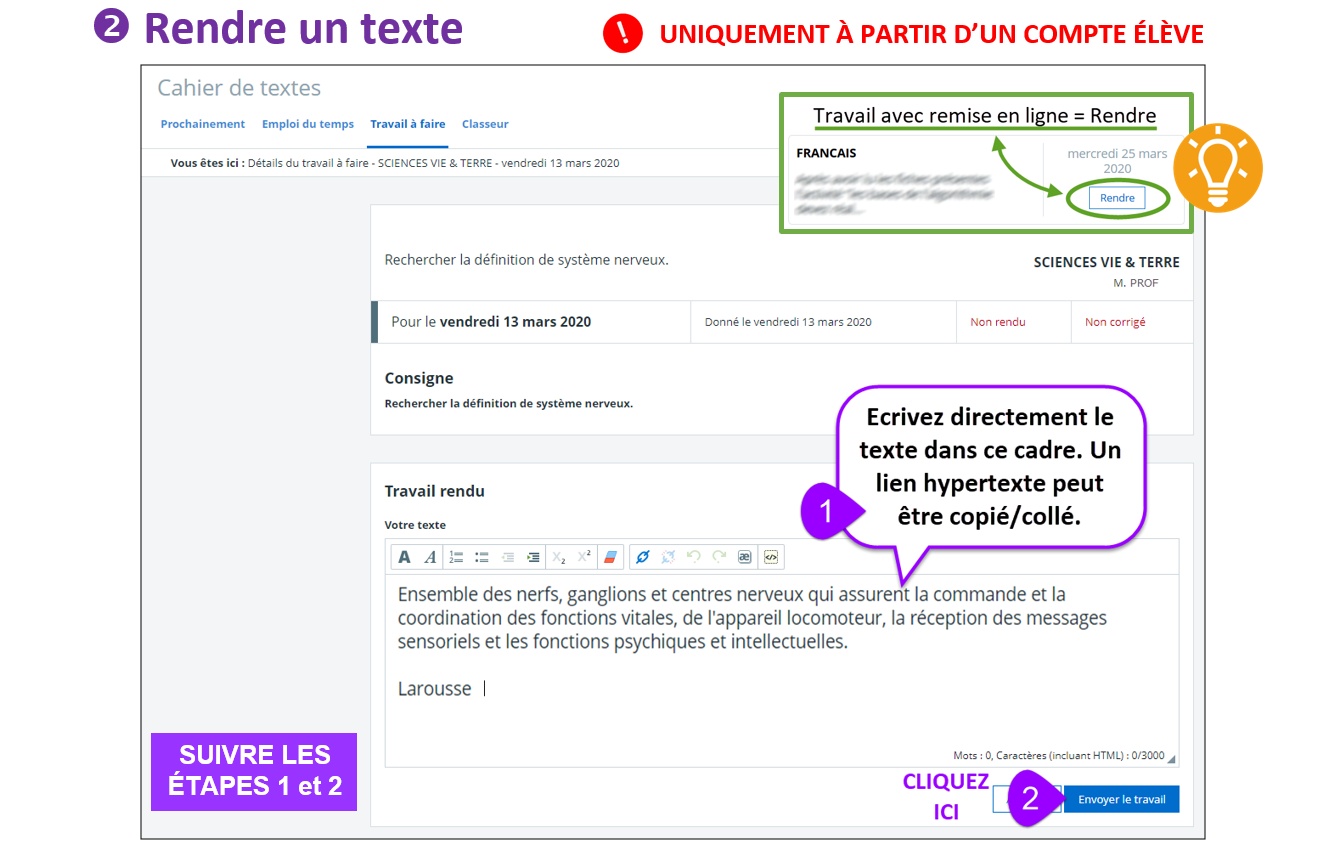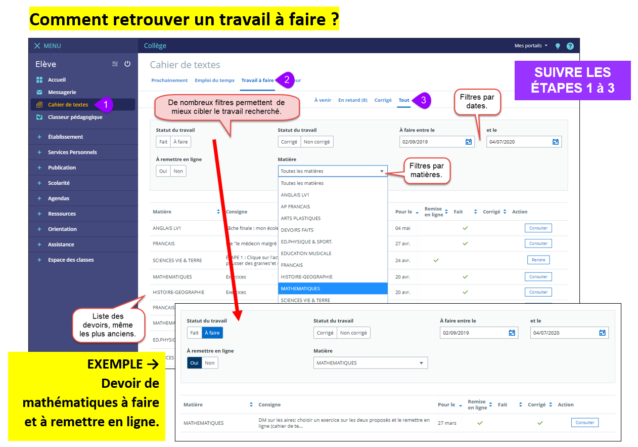 Utilisation du Cahier de texte côté élève
