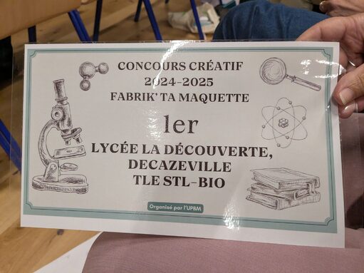 Deux de nos élÚves de Terminale STL, Estelle Cavalié et Maloë Peronne ont remporté le concours "Fabrik ta maquette", organisé par UPBM.