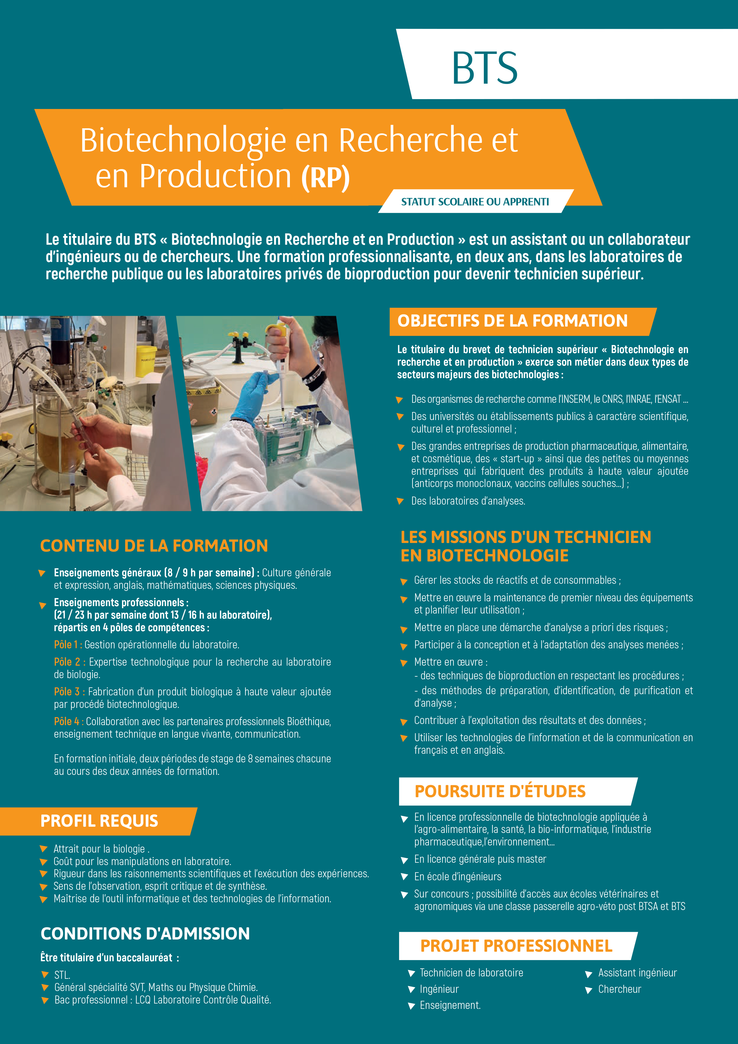 Présentation du BTS Biotechnologie en recherche et production - ici -