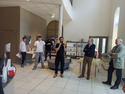 En lien avec le projet slam, la médiathèque de Decazeville accueille jusqu'au 13 mai l'exposition "Poétesses" qui met à l'honneur 13 slameuses. A l'occasion du vernissage, 4 élèves de 1re professionnelle ont slamé le texte qu'ils avaient écrit lors des 10h d'ateliers menés avec Antonin alias Singa. L'émotion était palpable pour les élèves et le public présent !
