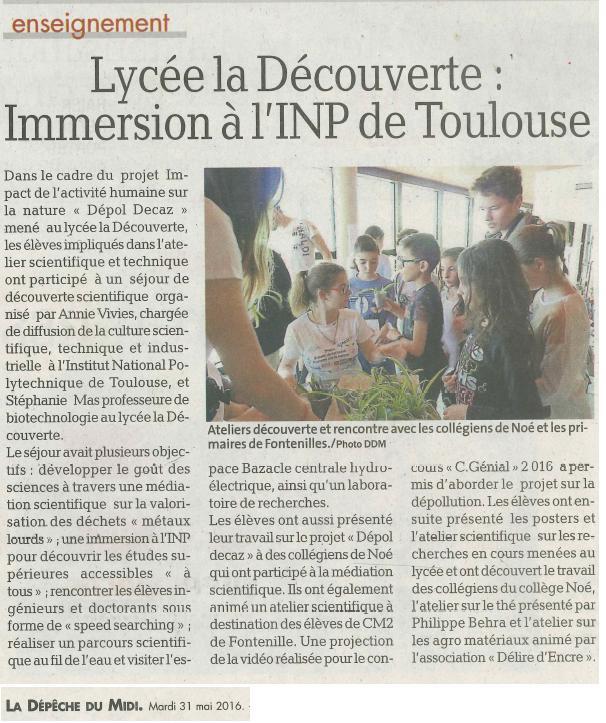 article Publié le 31/05/2016 dans La Dépêche du Midi