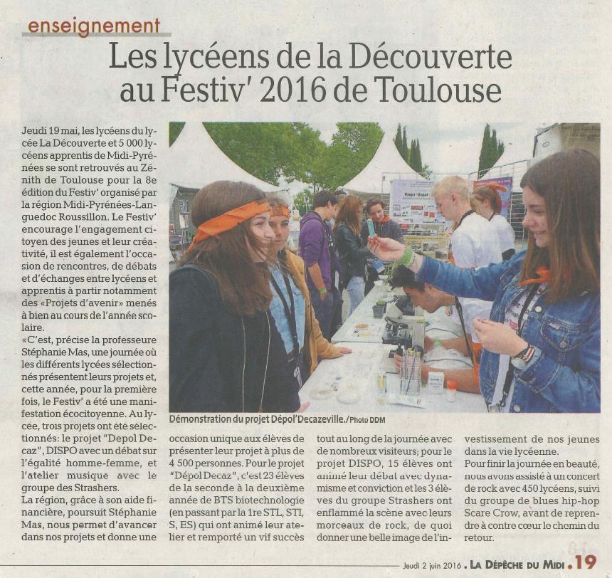 article Publié le 2/06/2016 dans La Dépêche du Midi