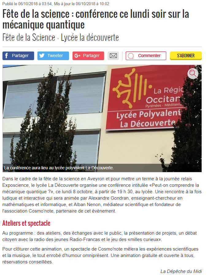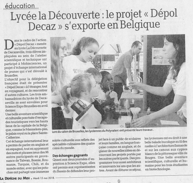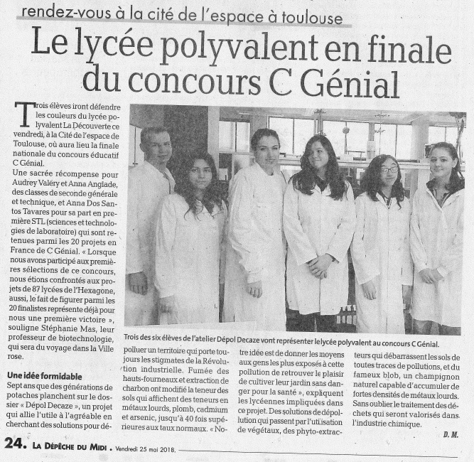 article Publié le 15/05/2018 dans La Dépêche du Midi