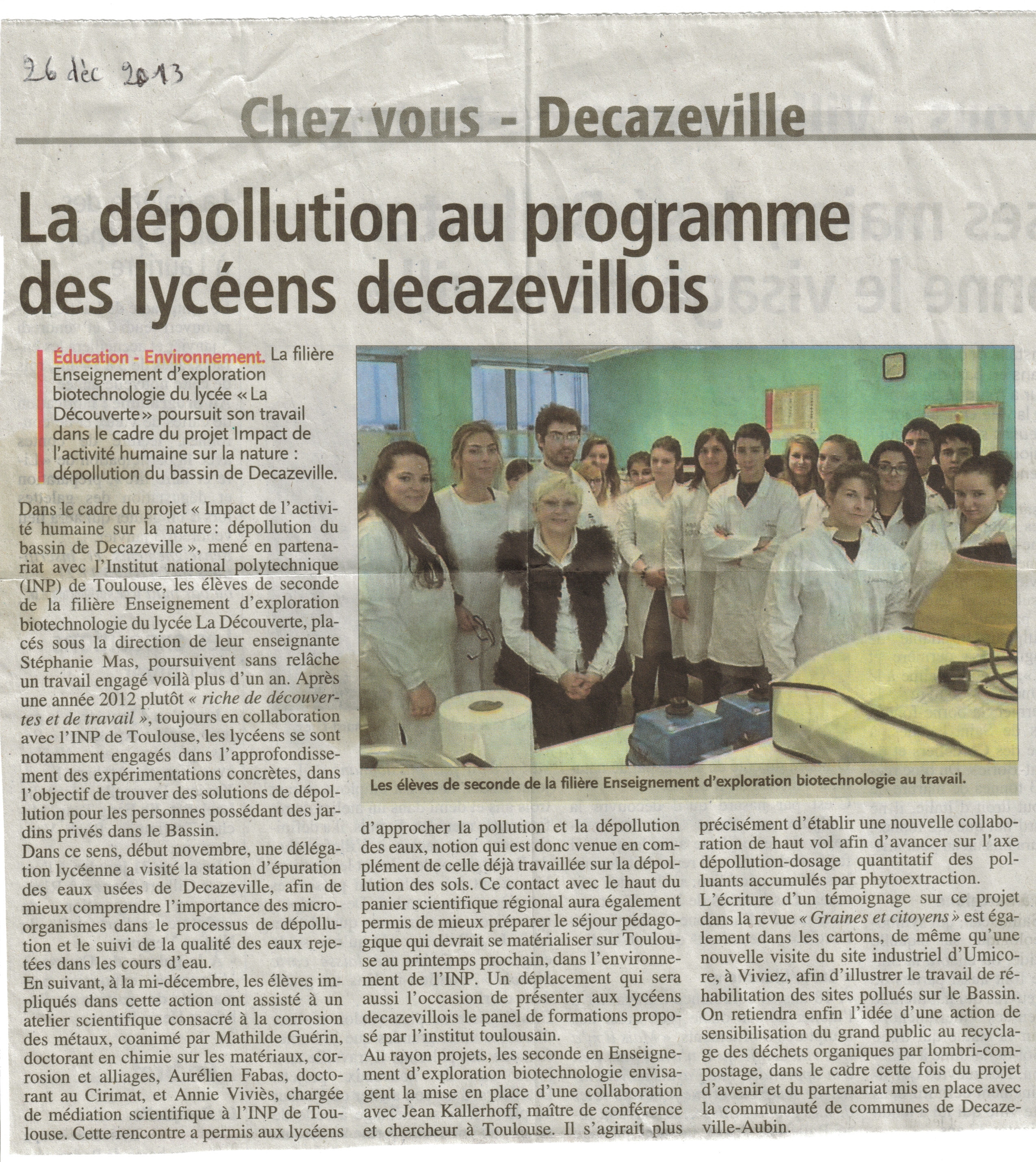 article Publié le 20/12/2013 dans la Dépêche du Midi