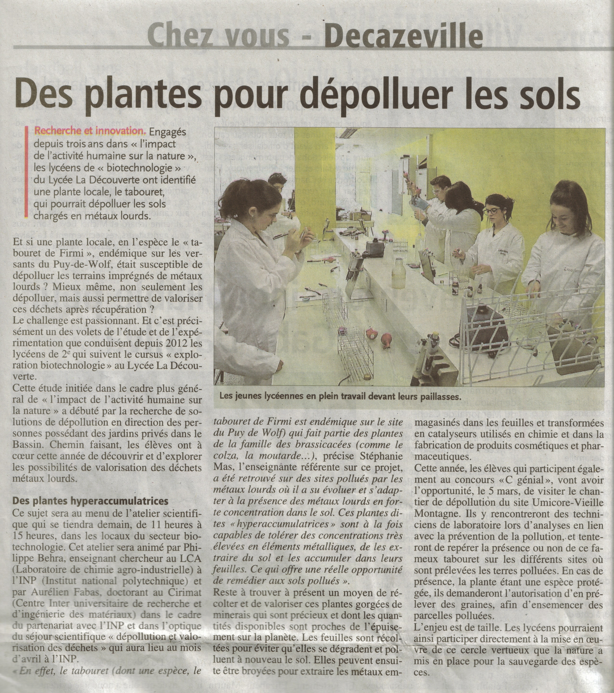 Présentation du projet | Blog Dépol Decaz | Blog Atelier Scientifique et Technique