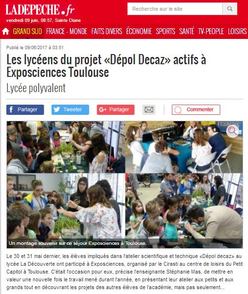 article Publié le 9/06/2017 dans La Dépêche du Midi
