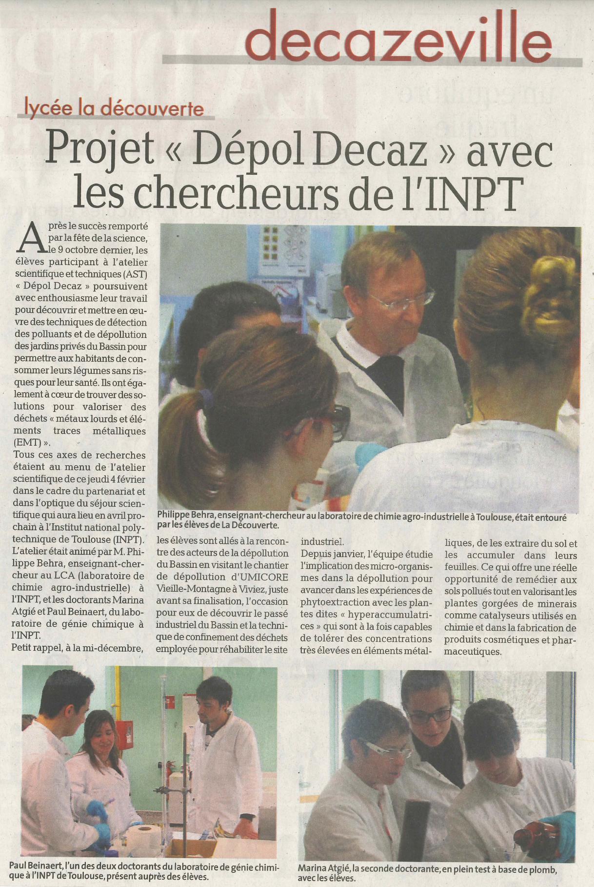 article Publié le 8/02/2016 dans La Dépêche du Midi