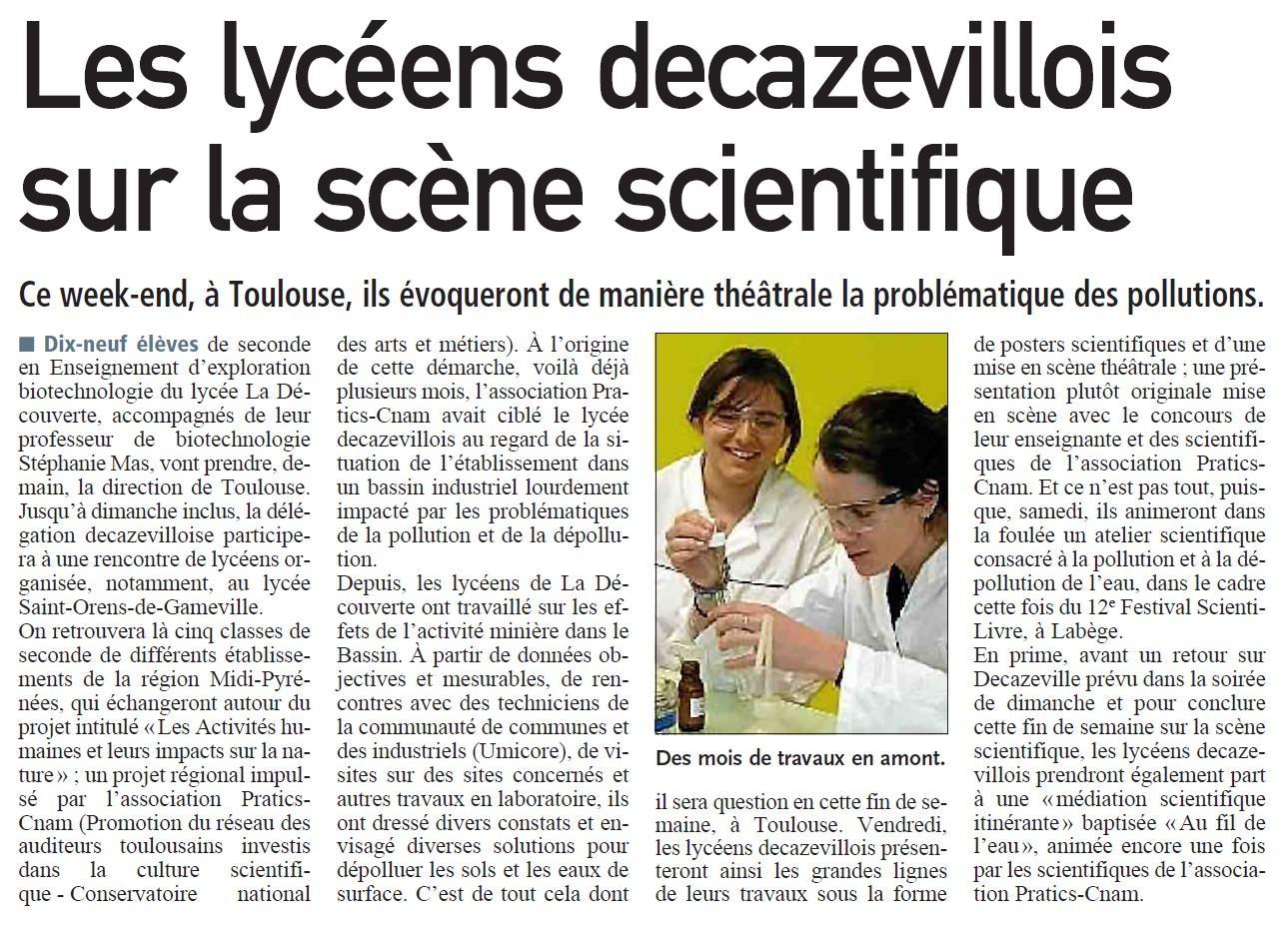 article Publié le 10/04/2012 dans la Dépêche du Midi