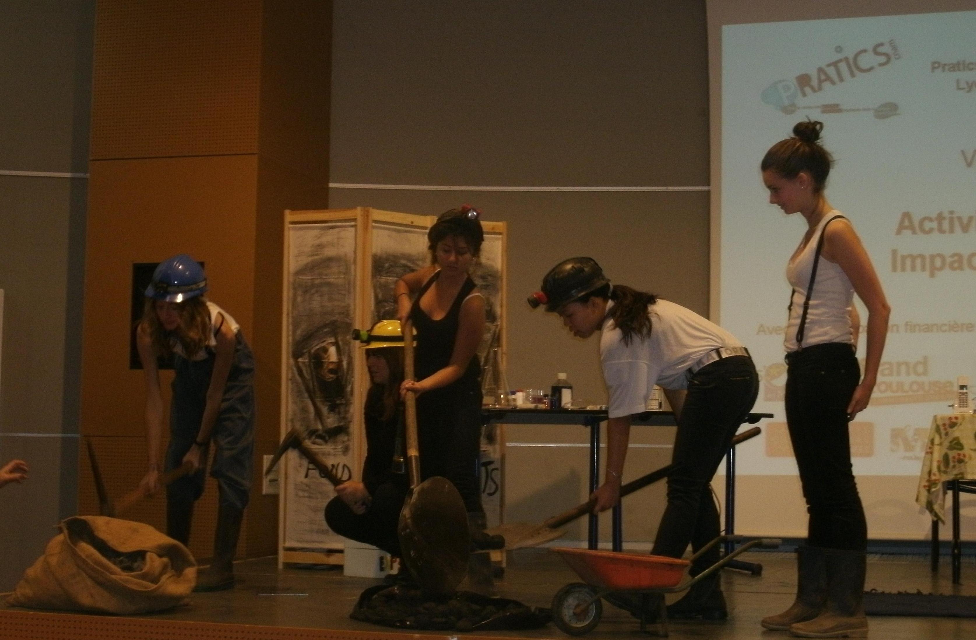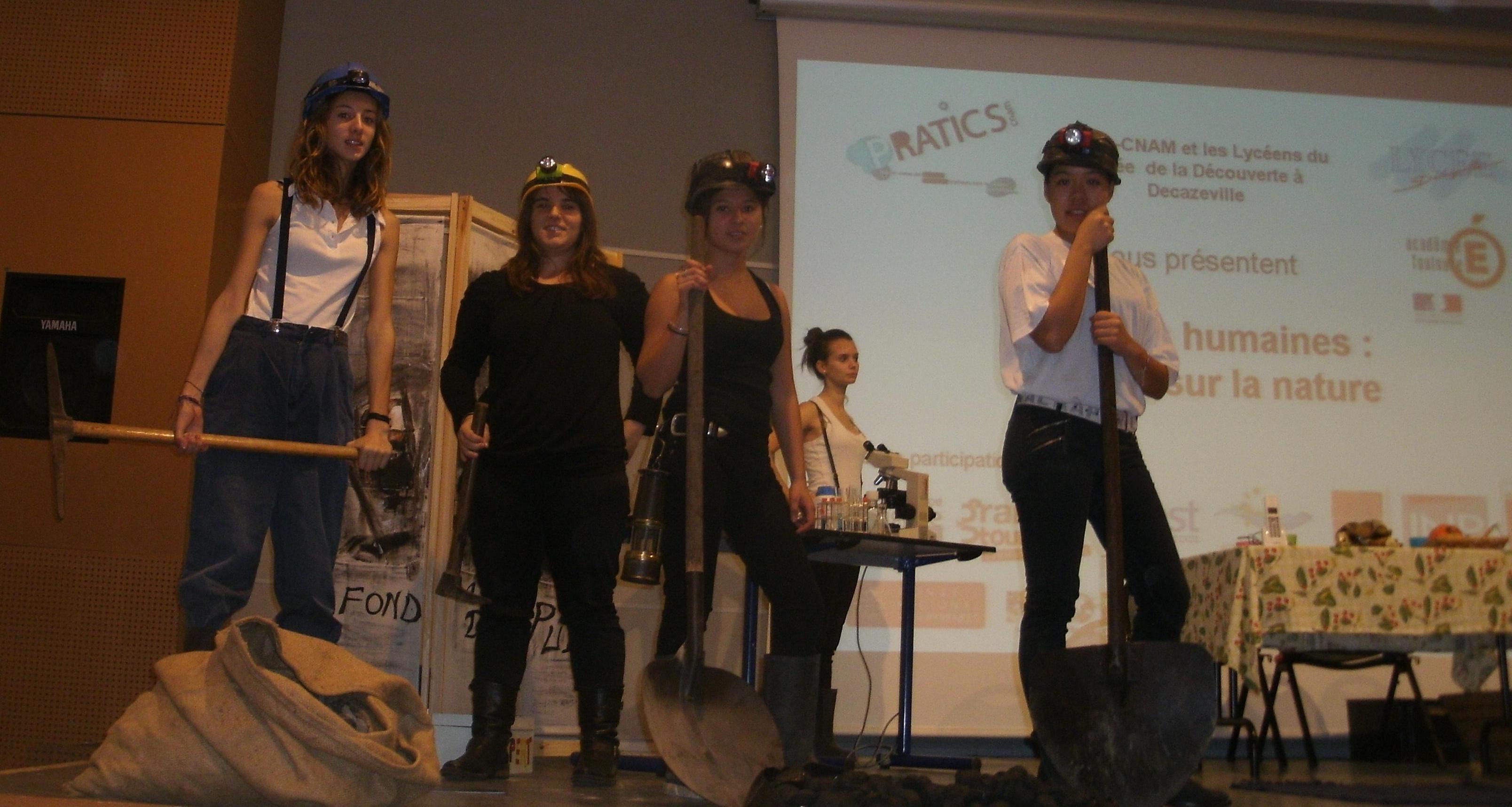 A cette occasion les élèves Decazevillois ont présenté leurs créations : posters scientifiques et mise en scène théâtrale « Du jardin pollué à l’assiette » auprès des élèves de seconde de Clémence Royer à Fonsorbes, de Jean Jaurès à Carmaux, du LEGTA à Auzeville Tolosane, du Couserans à Saint Girons avec qui ils ont débattu ensuite sur les problèmes de pollution, les risques sur la santé, les moyens de dépollution et le patrimoine minier et régional.